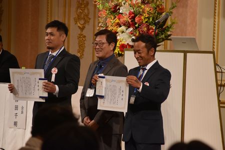 結婚式会場を2部屋使用する位の規模で行いました。  内容的には、新たに加入された企業の紹介から始まり、会長(私)と市原組社長の挨拶で勢いをつけ、現場表彰、会社表彰、個人表彰